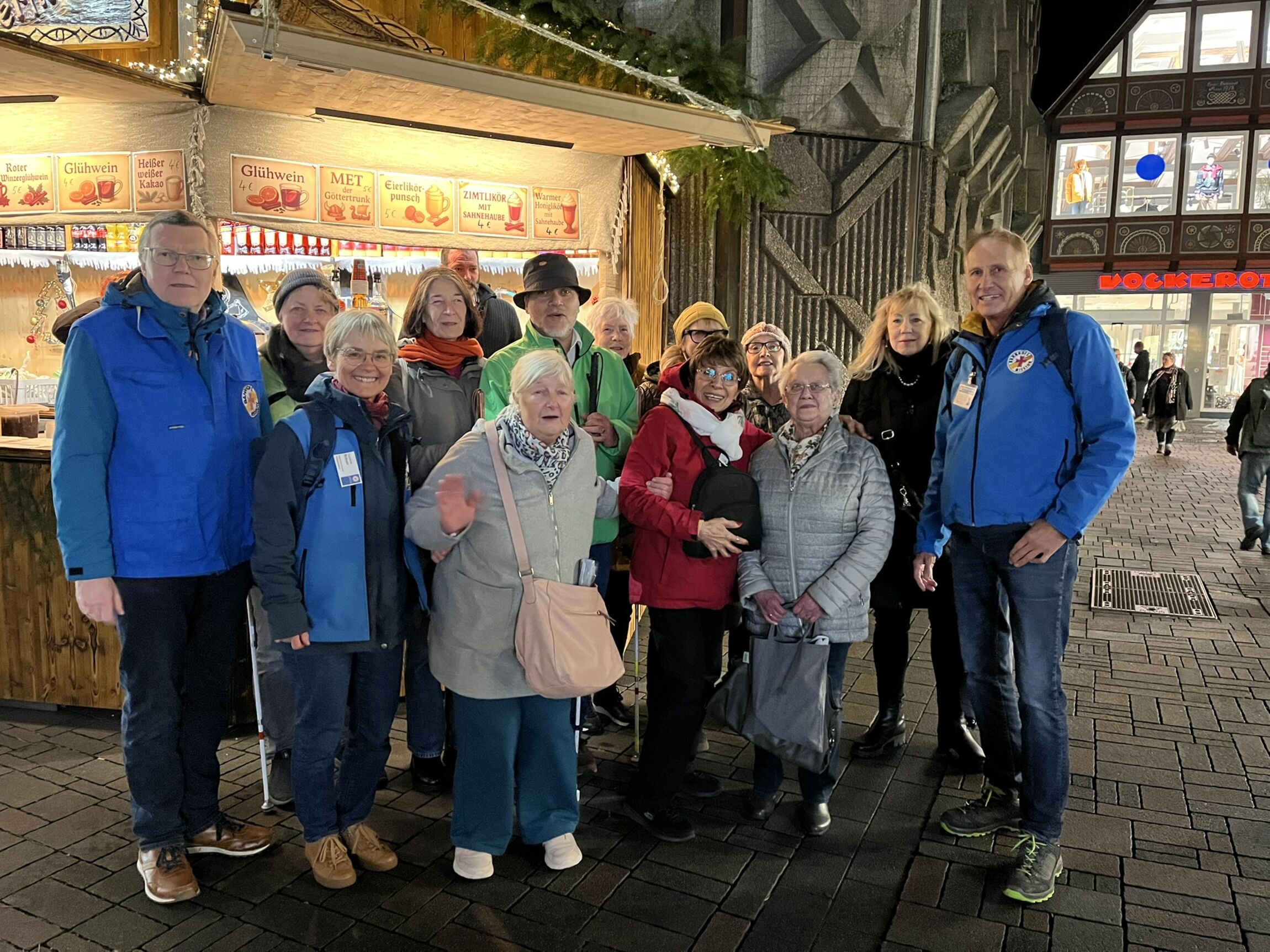 Eine Gruppe von 13 Personen mit unterschiedlichen körperlichen Beeinträchtigungen hat sich für eine von Ehrenamtlichen der Bahnhofsmission begleitete Fahrt zum Weihnachtsmarkt in Goslar angemeldet. Menschen mit Sehbehinderung, ein Rollstuhlfahrer, ältere Menschen mit Unsicherheiten und motorischen Einschränkungen freuten sich über das kostenlose Begleitangebot der Bahnhofsmission.