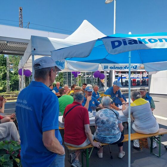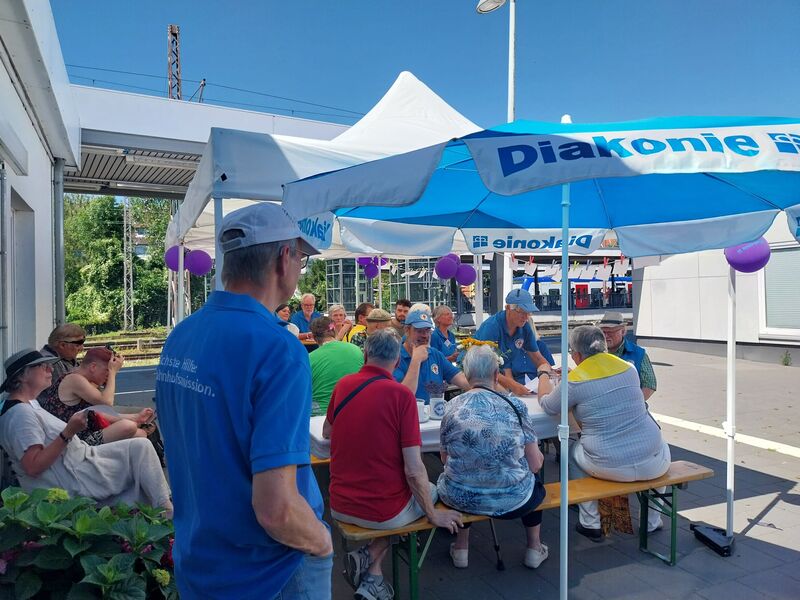 Bei strahlendem Sonnenschein und über 30 Grad im Schatten hat die Bahnhofsmission Hildesheim mit einem „Tag der offenen Tür“ am 1. Juli 2025 Geburtstag gefeiert. Bei Live-Musik, leckerem Chili sin Carne von den Maltesern und einer sehr zugewandten Andacht der Superintendentin Cordula Trauner war die Stimmung sehr entspannt und den Temperaturen angemessen locker. Auch Reisende freuten sich über einen Kaffee oder Kaltgetränk am Gleis. Wer wollte konnte seine Kenntnisse zum Thema Bahnhofsmission in einem Quiz testen oder aber dem Drehorgelspieler Daniel in der Bahnhofshall zuhören.
