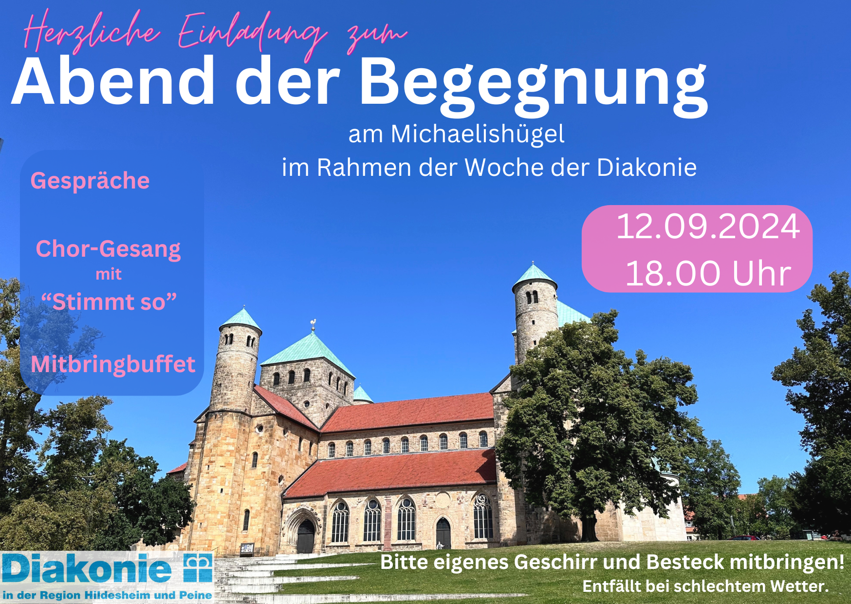 Das Diakonische Werk Hildesheim lädt anlässlich der Woche der Diakonie am 12.09.2024 ab 18.00 Uhr zu einem vielfältigen Begegnungsabend ins Michaelis Weltcafé ein.