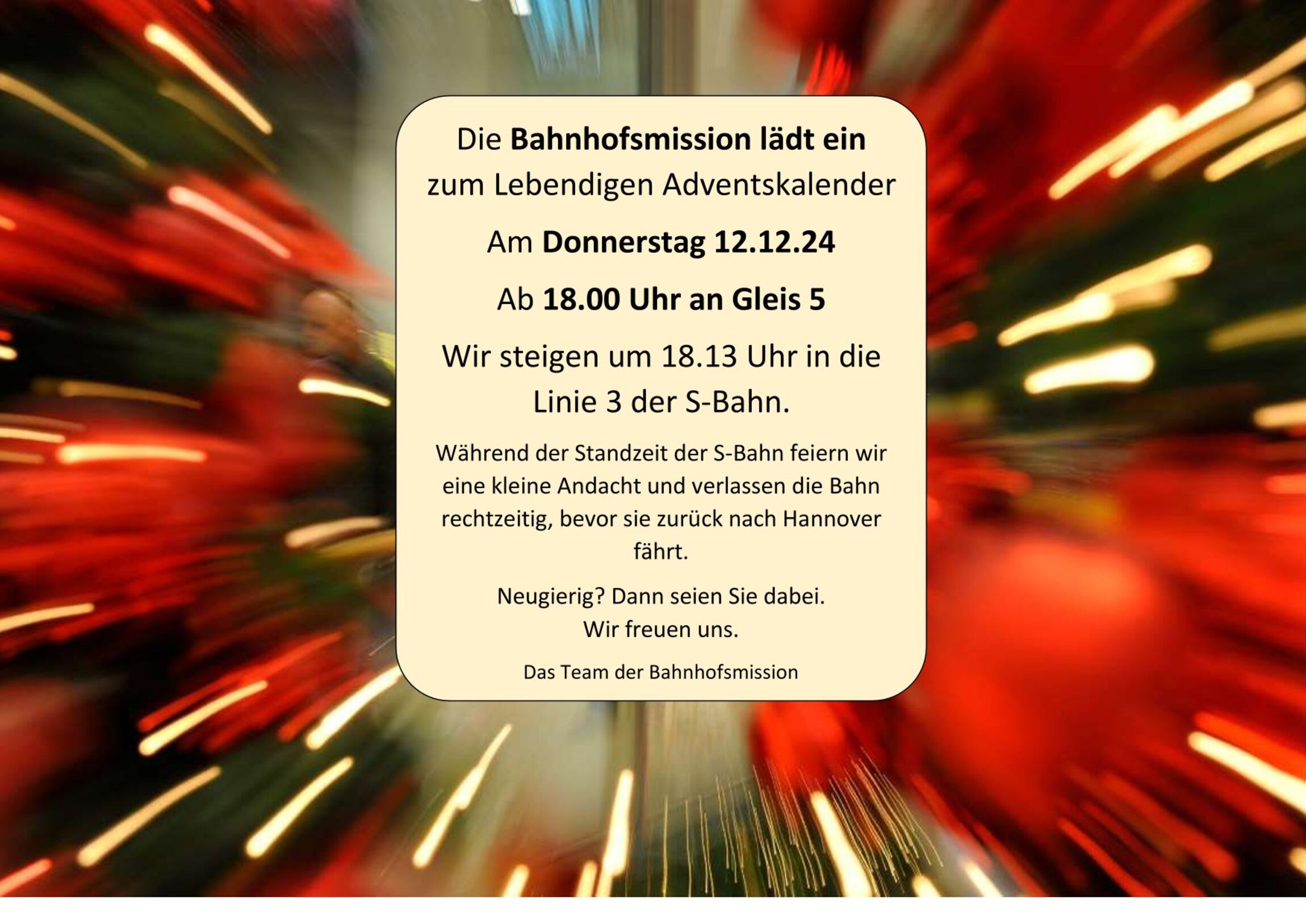 In diesem Jahr hat sich das Team der Bahnhofsmission eine besondere Aktion im Rahmen des Lebendigen Adventskalenders der Nordstadt überlegt. Warum nicht einmal in die S-Bahn einladen?