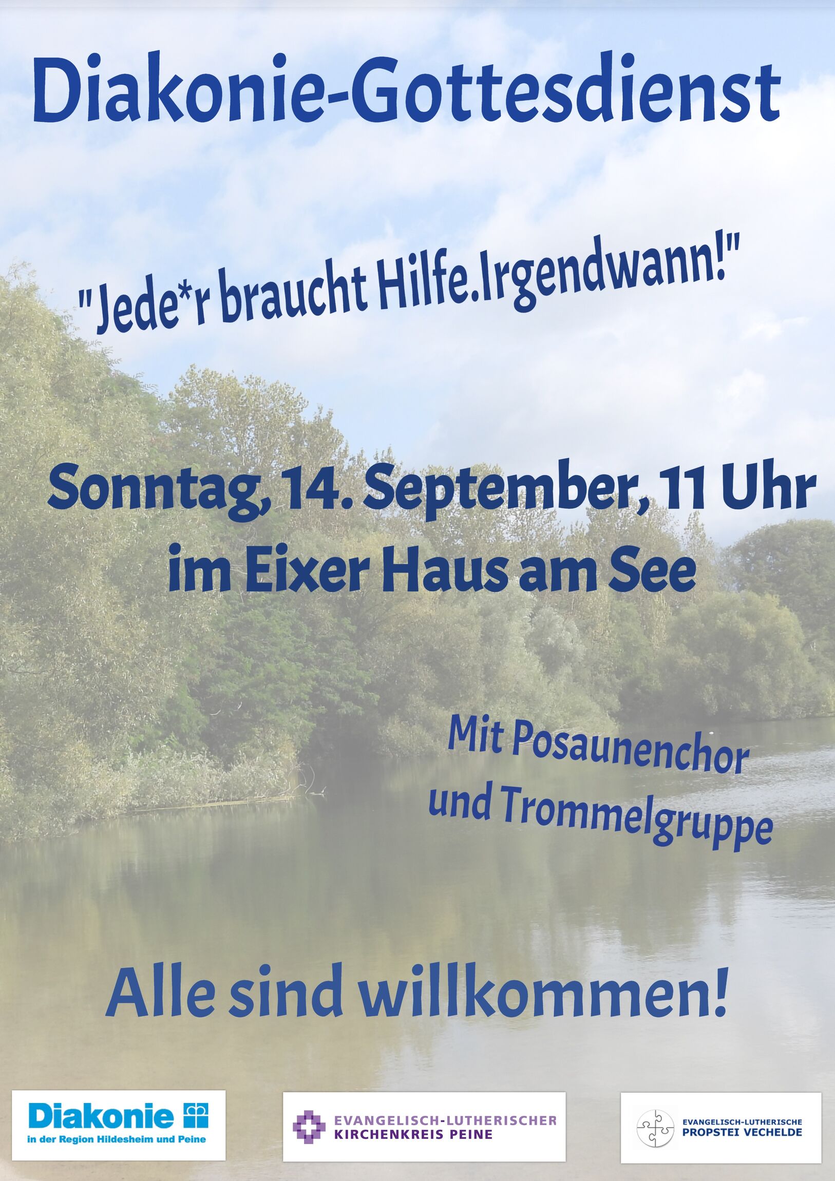 Diakonie-Gottesdienst, Sonntag 14 September, 11 Uhr, im Eixer Haus am See